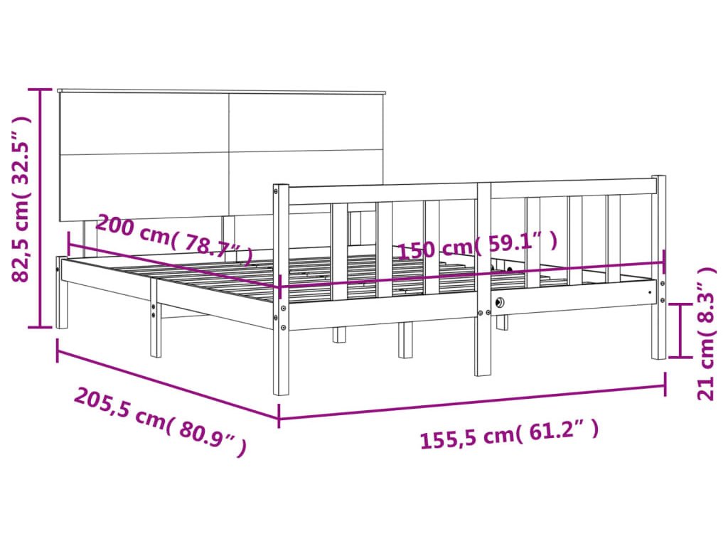 - Celkové rozměry postele: 205,5 x 155,5 x 82,5 cm (D x Š x V)
