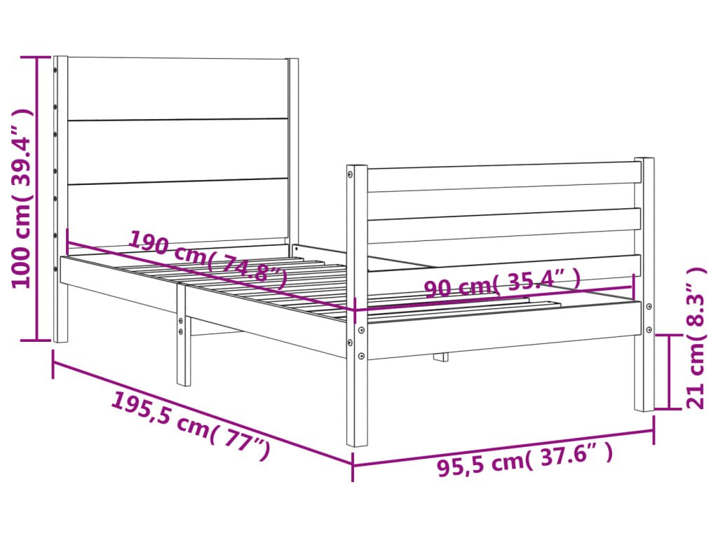 - Celkové rozměry postele: 195,5 x 95,5 x 100 cm (D x Š x V)