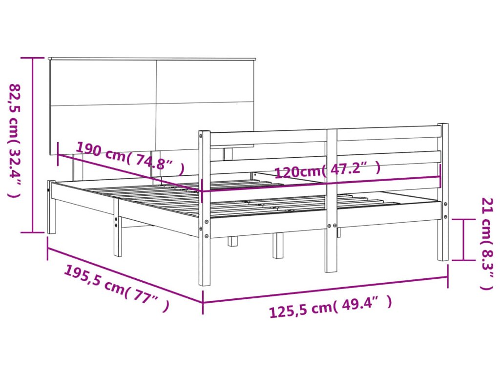 - Celkové rozměry postele: 195,5 x 125,5 x 82,5 cm (D x Š x V)