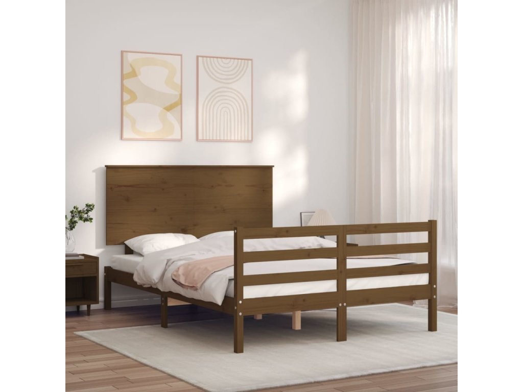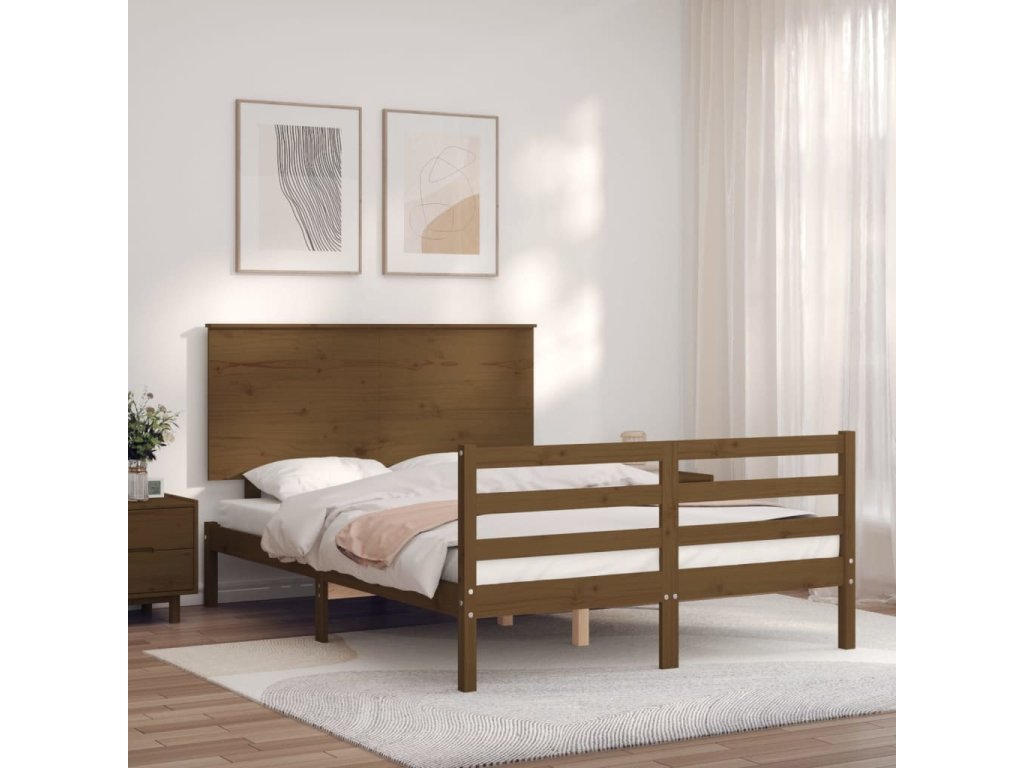 Rám postele s čelem Small Double masivní dřevo [3195195]