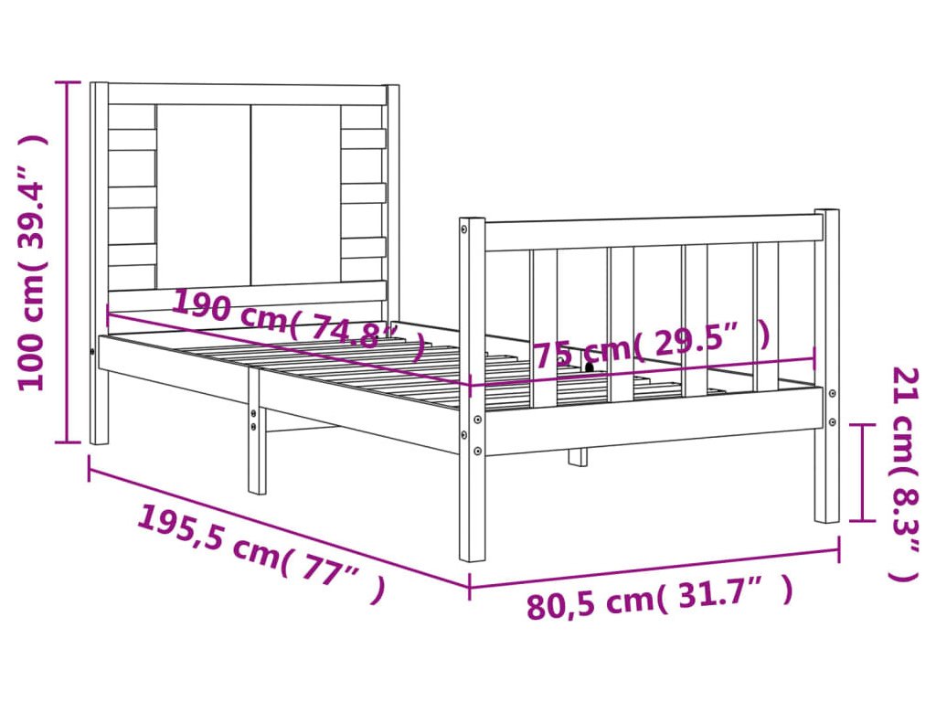 Rám postele s čelem Small Single masivní dřevo [3192780]