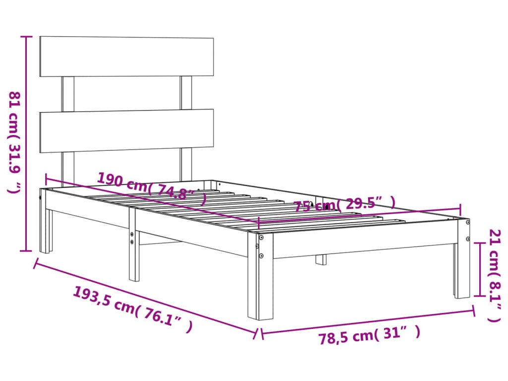 - Celkové rozměry postele: 193,5 x 78,5 x 81 cm (D x Š x V)