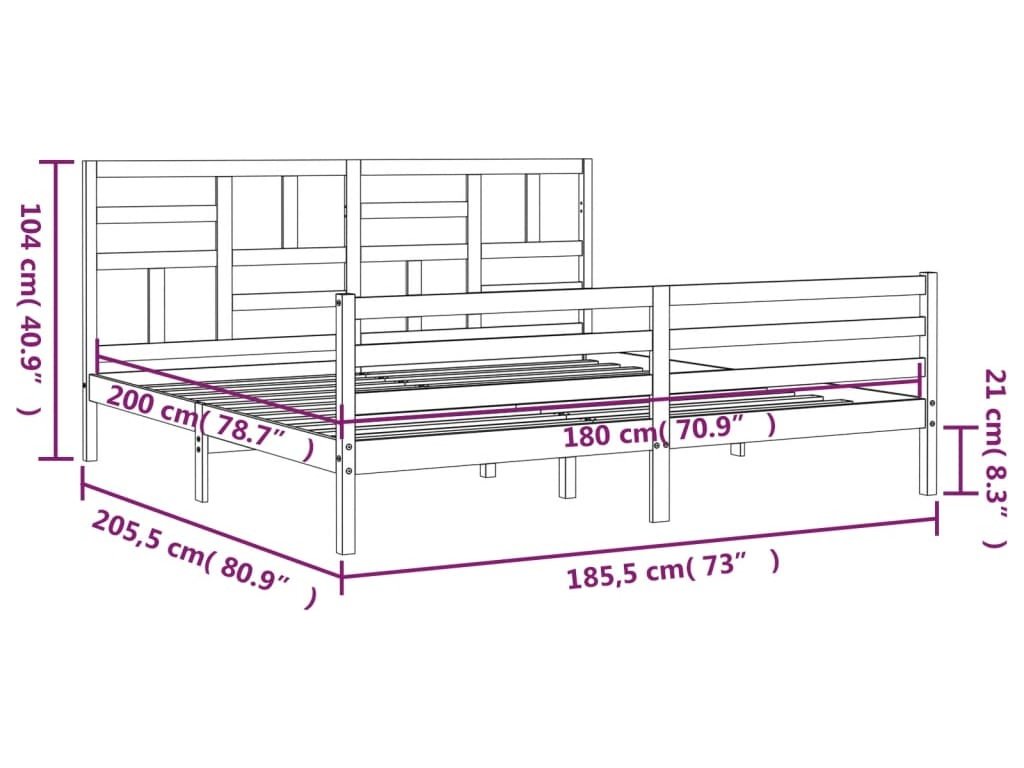 Rám postele s čelem Super King Size masivní dřevo [3194915]