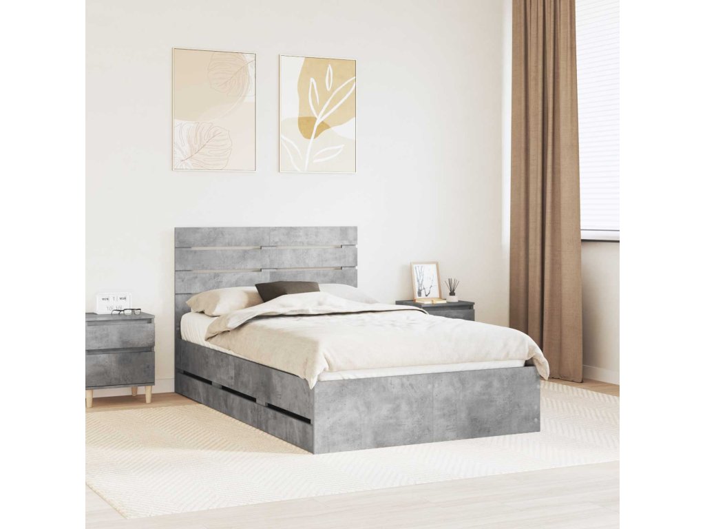 Rám postele s čelo Betonově šedá 120 x 190 cm Inženýrské dřevo [3411521]