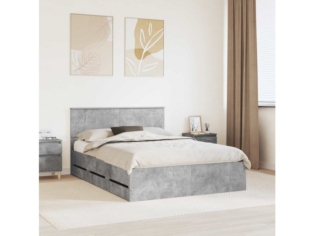 Rám postele s čelo Betonově šedá 150 x 200 cm Inženýrské dřevo [3407973]