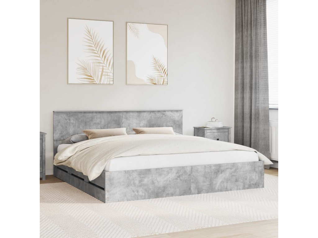 Rám postele s čelo Betonově šedá 200 x 200 cm Inženýrské dřevo [3410675]