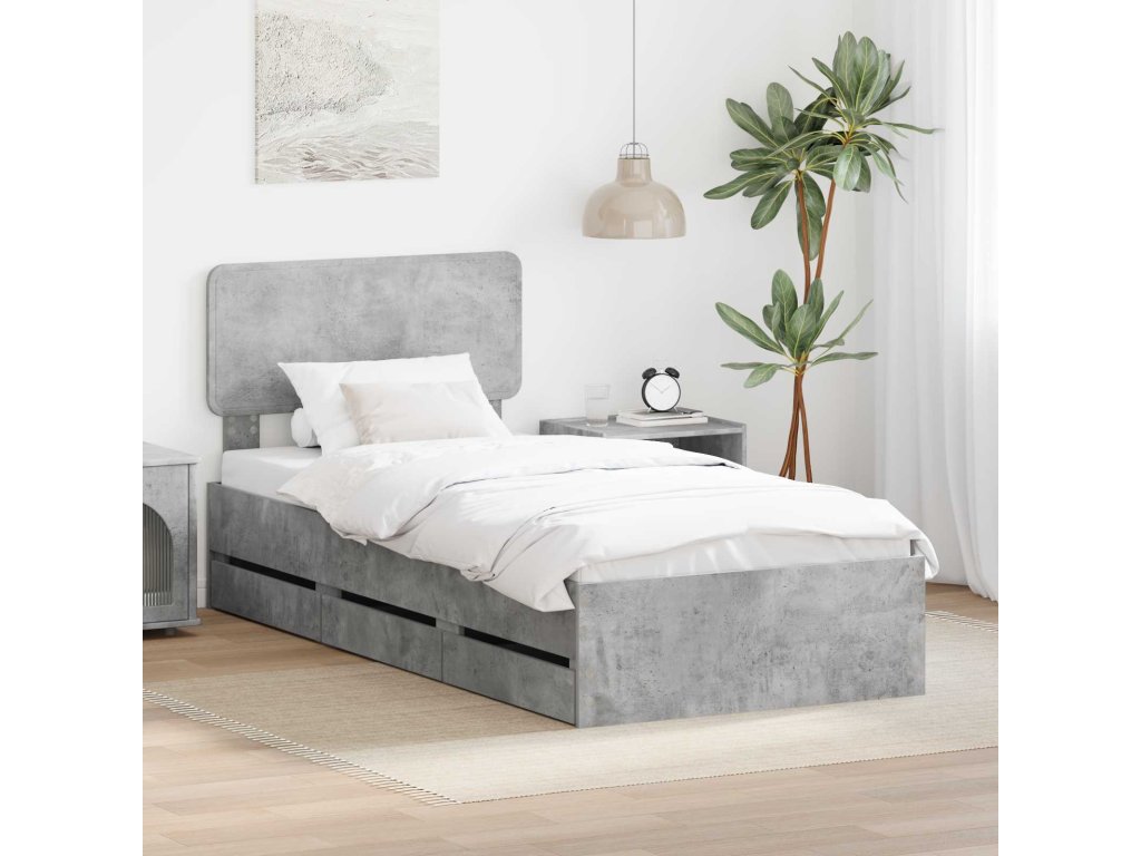 Rám postele s čelo Betonově šedá 90 x 190 cm Inženýrské dřevo [3412223]