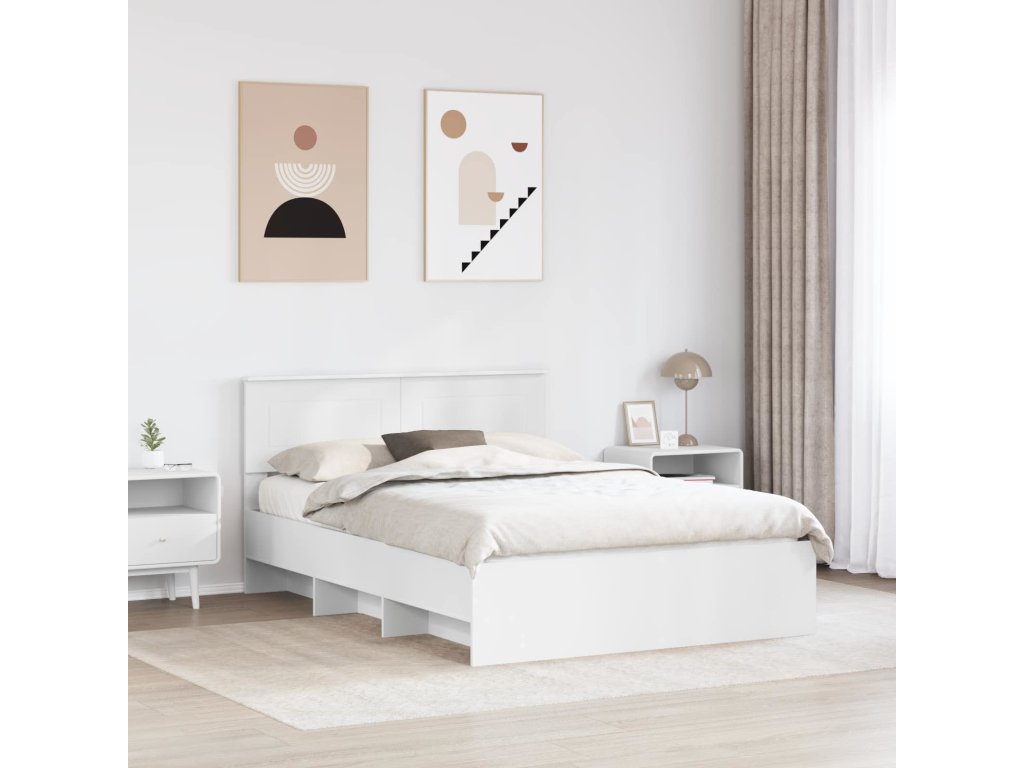 Rám postele s čelo Bílá 140 x 200 cm kompozitní dřevo [3408851]