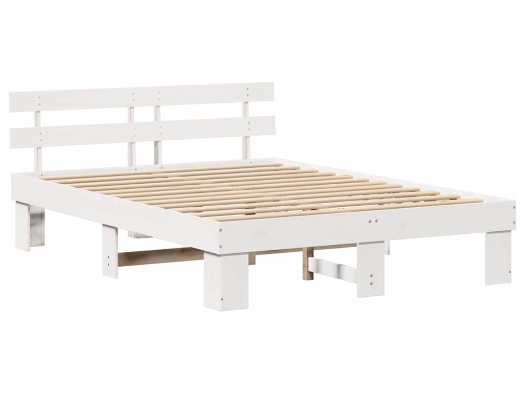 Rám postele s čelo Bílá 150 x 200 cm Masivní borové dřevo [872438]