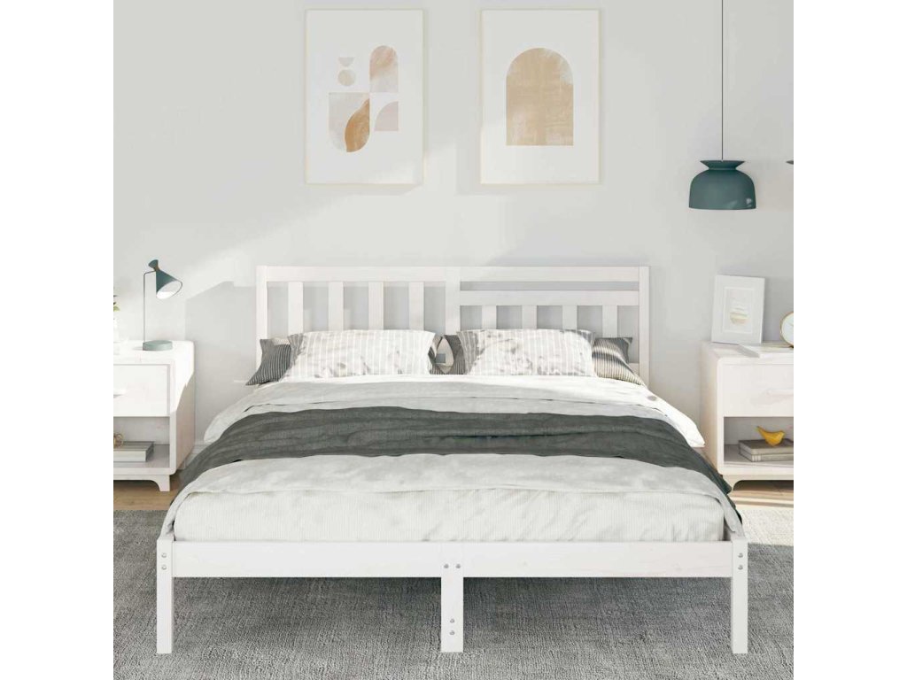 Rám postele s čelo Bílá 150 x 200 cm Masivní borové dřevo [872228]