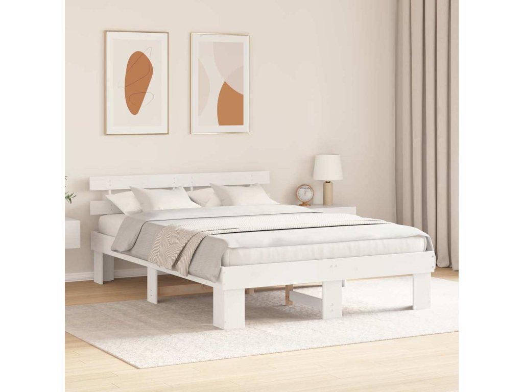 Rám postele s čelo Bílá 160 x 200 cm Masivní borové dřevo [872435]