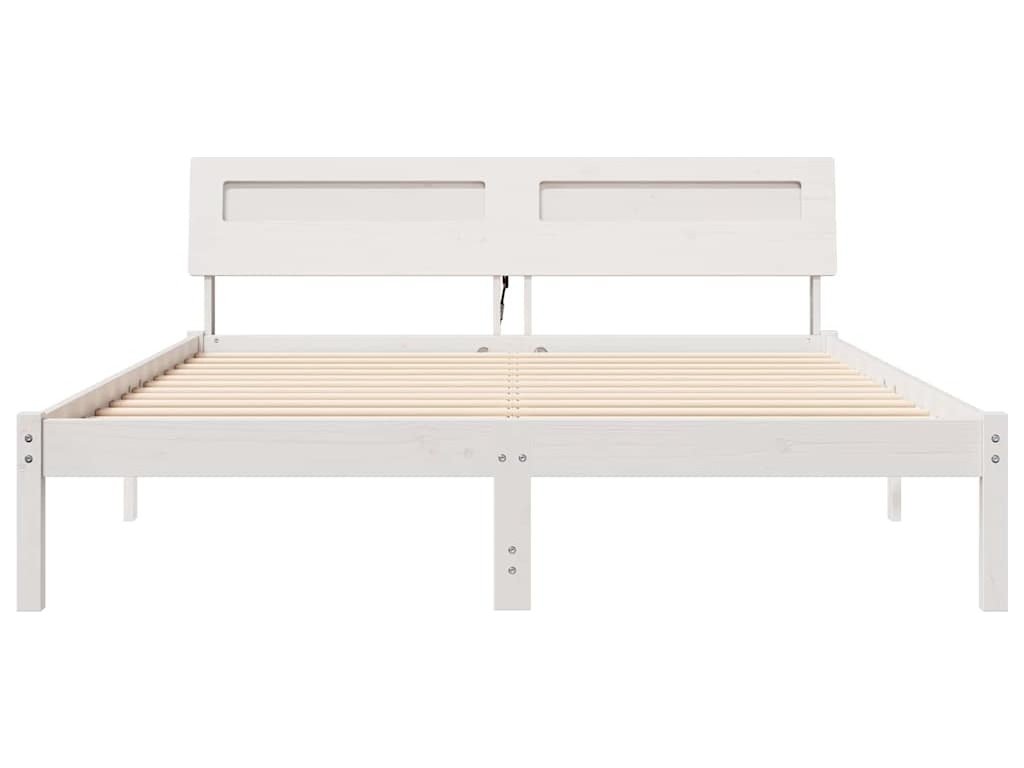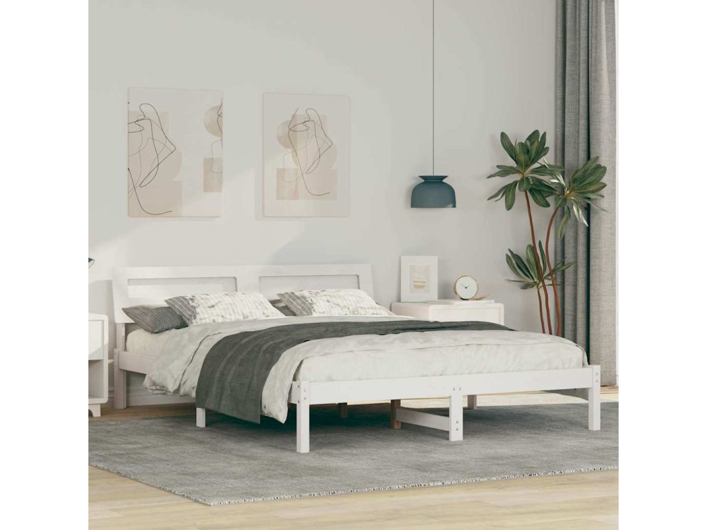 Rám postele s čelo Bílá 160 x 200 cm Masivní borové dřevo [872771]