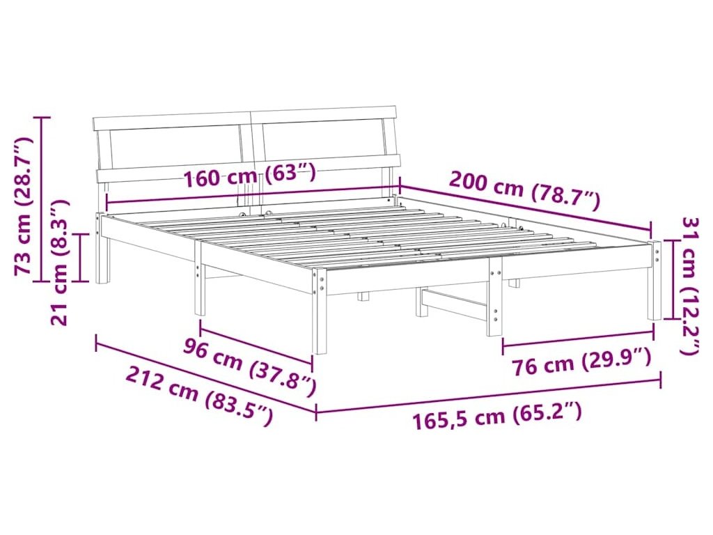 - Velikost matrace: Manželská postel king (160 cm x 200 cm nebo 63" x 79")