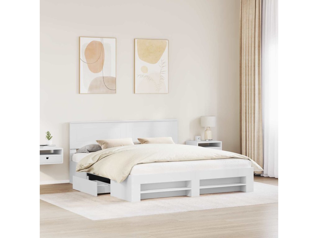 Rám postele s čelo Bílá 180 x 200 cm kompozitní dřevo [3408732]