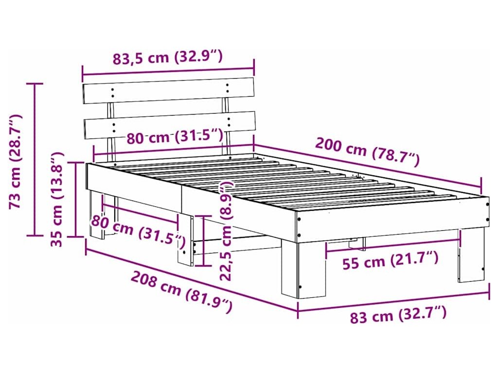 - Velikost matrace: Malé jednolůžko (80 cm x 200 cm nebo 31" x 79")