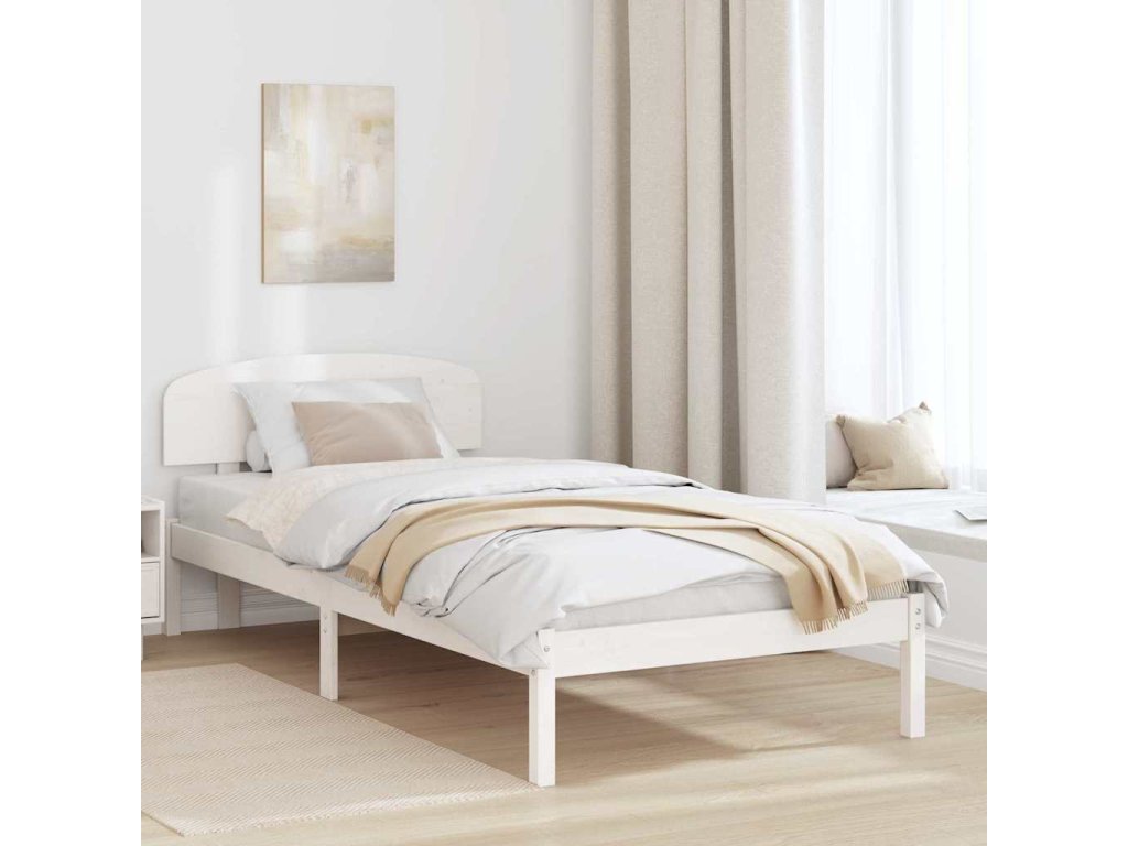 Rám postele s čelo Bílá 90 x 200 cm Masivní borové dřevo [872081]