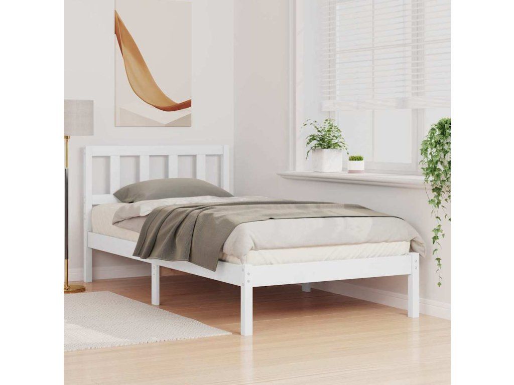Rám postele s čelo Bílá 90 x 200 cm Masivní borové dřevo [872249]