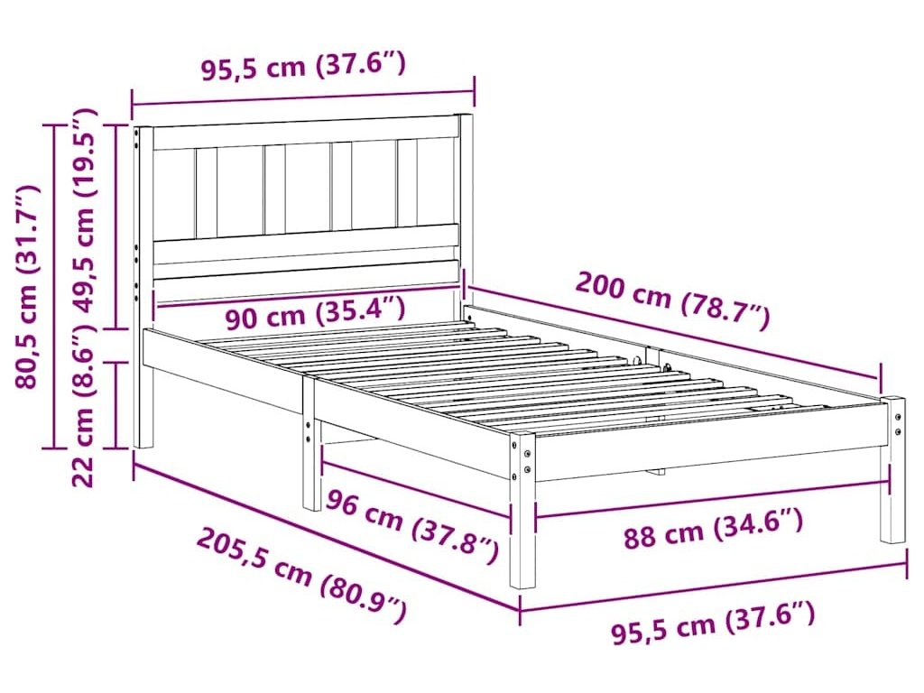 - Velikost matrace: Jednolůžko (90 cm x 200 cm nebo 35" x 79")