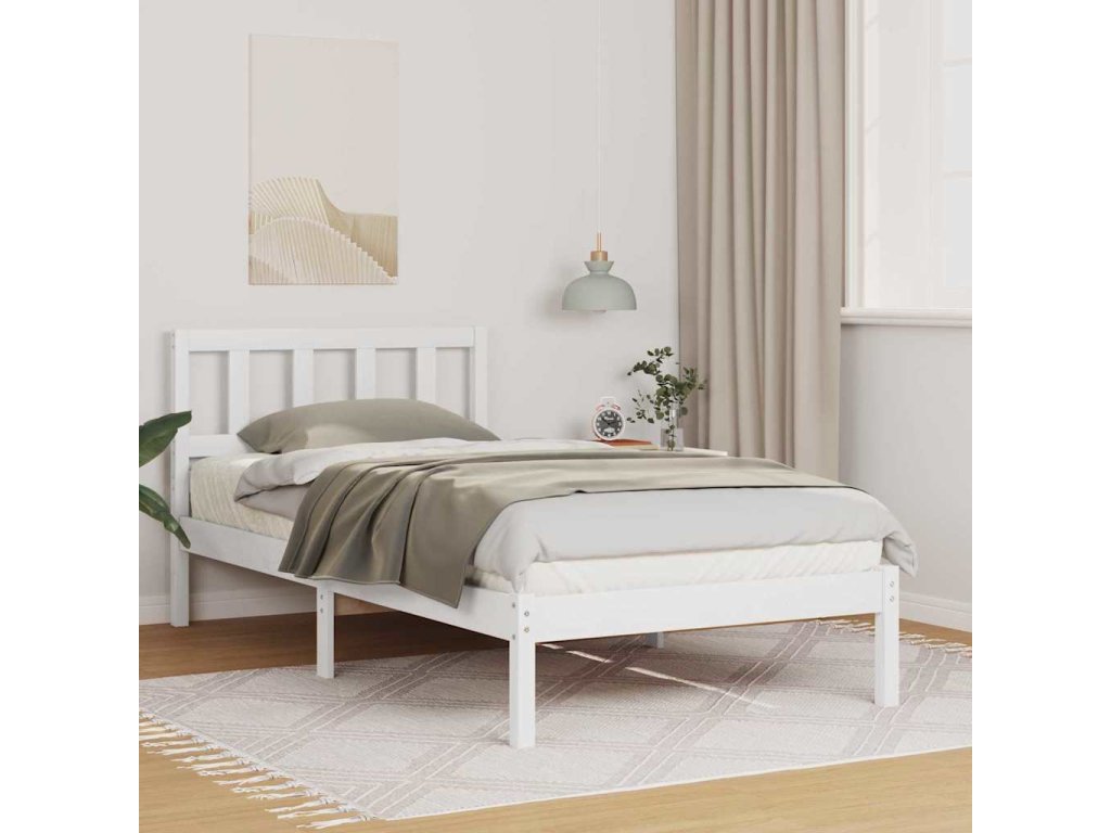 Rám postele s čelo Bílá 90 x 200 cm Masivní borové dřevo [872249]