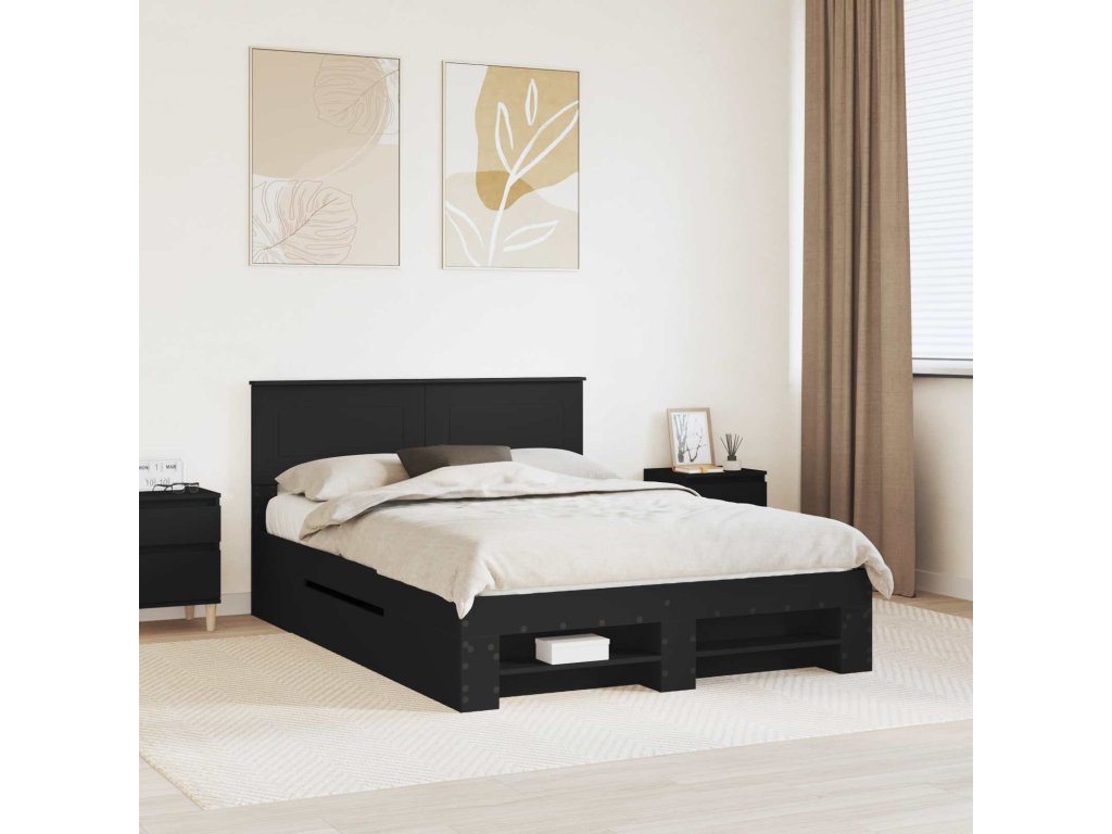 Rám postele s čelo Černá 140 x 200 cm kompozitní dřevo [3408754]