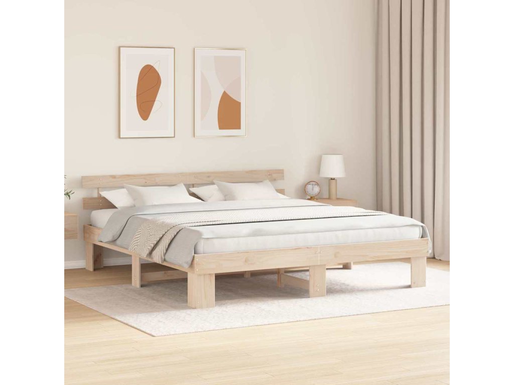 Rám postele s čelo Přírodní 180 x 200 cm Masivní borové dřevo [872431]