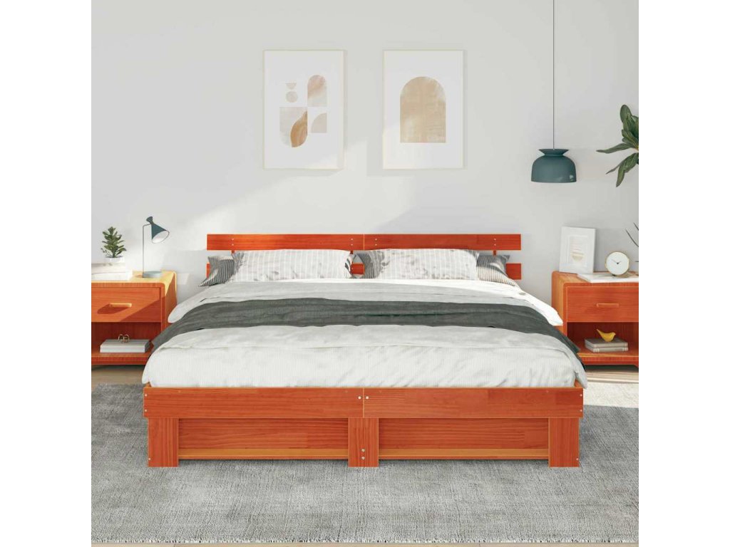 Rám postele s čelo Hnědá 200 x 200 cm Masivní borové dřevo [3385672]