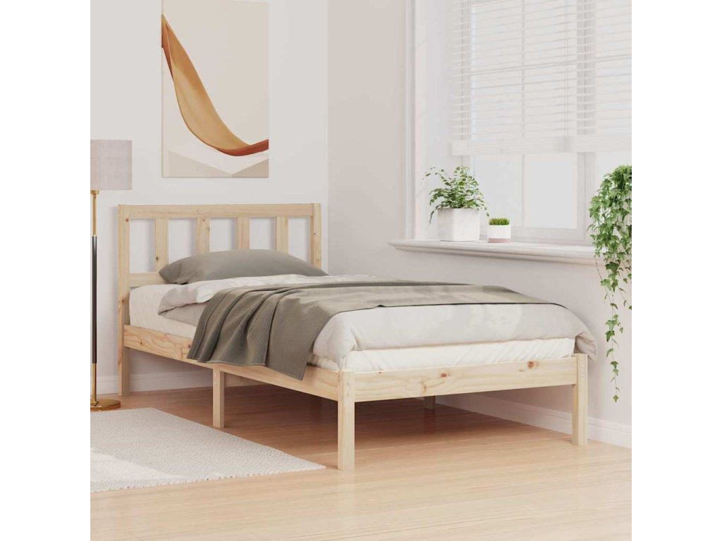 Rám postele s čelo Hnědá 90 x 190 cm Masivní borové dřevo [872254]