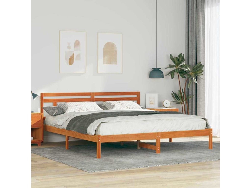 Rám postele s čelo Hnědá Borové dřevo [872364]