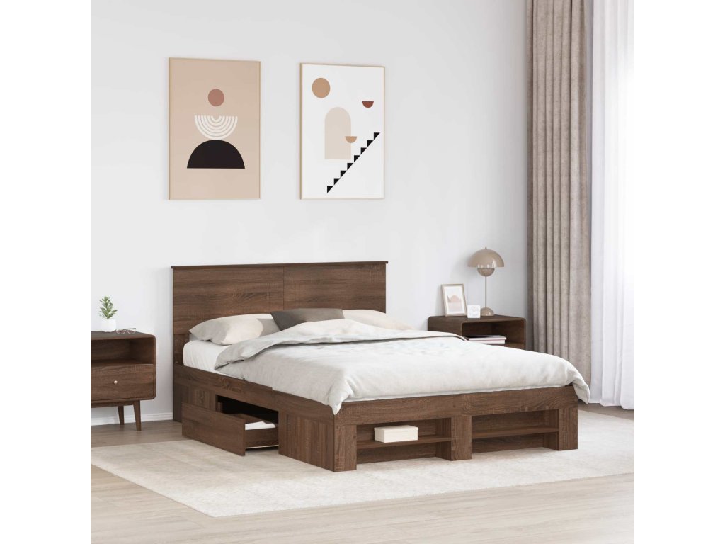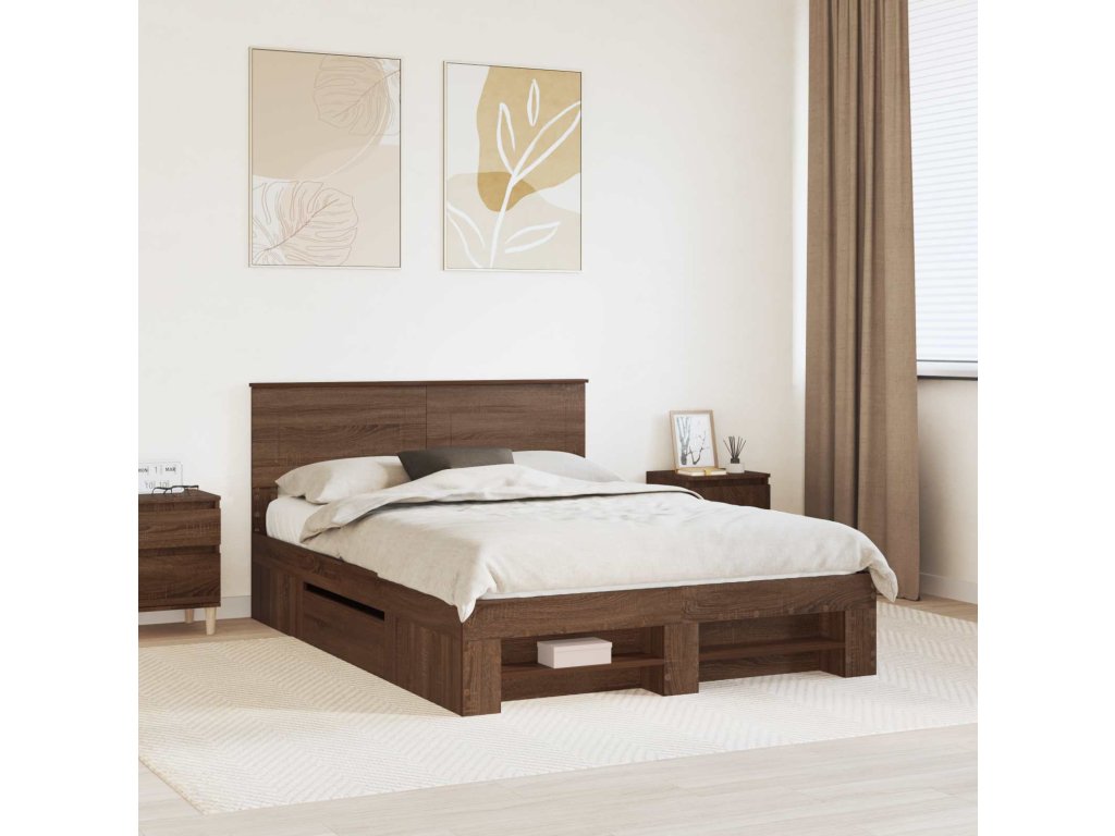 Rám postele s čelo Hnědý dub 140 x 200 cm kompozitní dřevo [3408759]