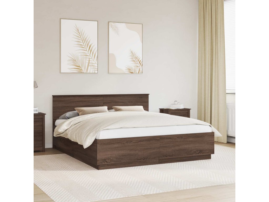 Rám postele s čelo Hnědý dub 200 x 200 cm kompozitní dřevo [3408046]