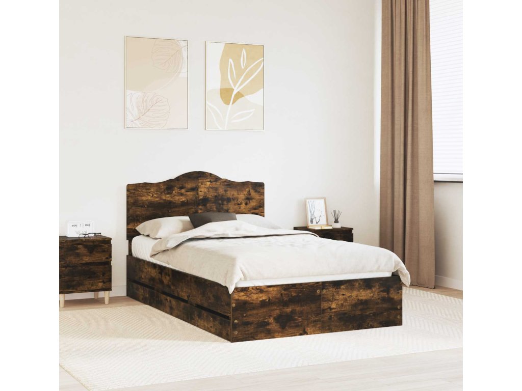 Rám postele s čelo Kouřový dub 120 x 200 cm Inženýrské dřevo [3413440]