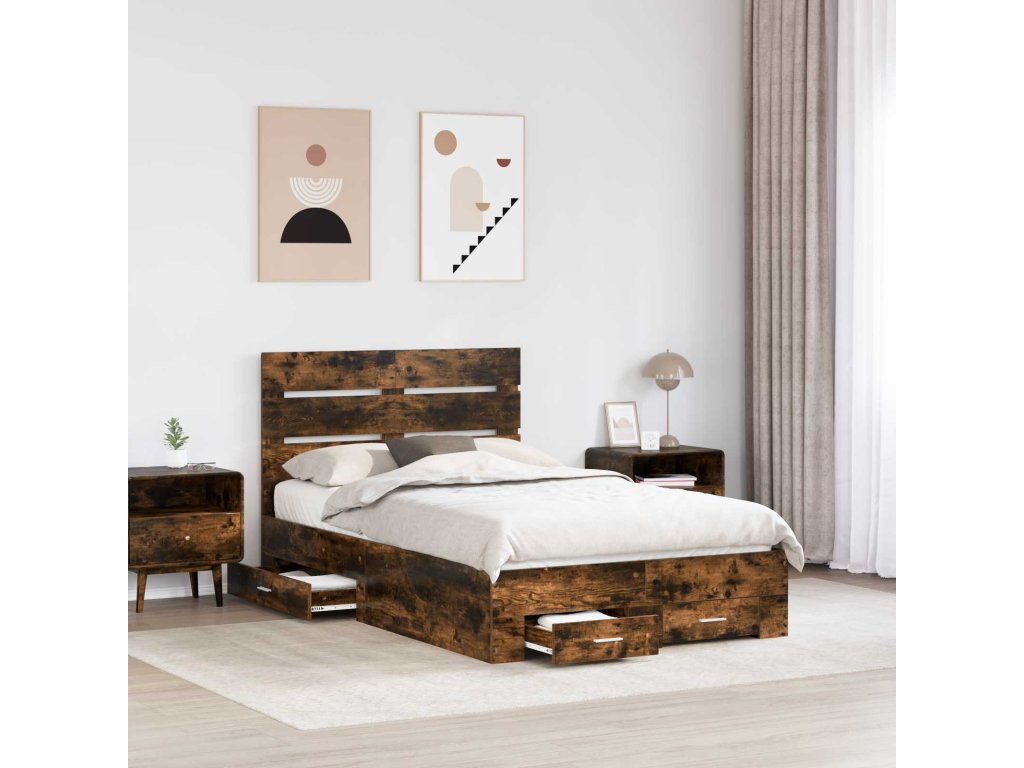 Rám postele s čelo Kouřový dub 135 x 190 cm kompozitní dřevo [3411984]