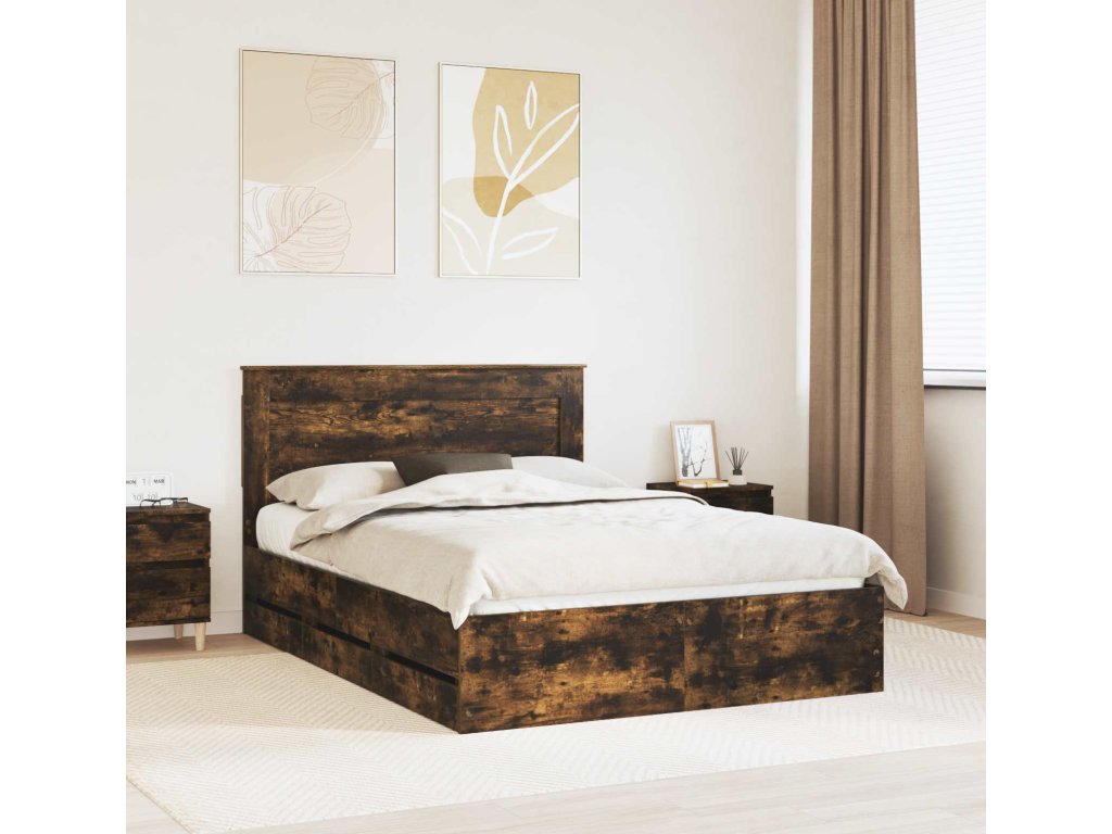 Rám postele s čelo Kouřový dub 150 x 200 cm Inženýrské dřevo [3410170]