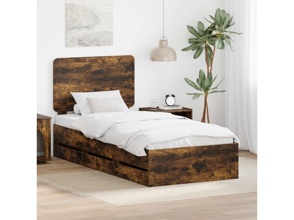 Rám postele s čelo Kouřový dub 90 x 190 cm Inženýrské dřevo [3412634]