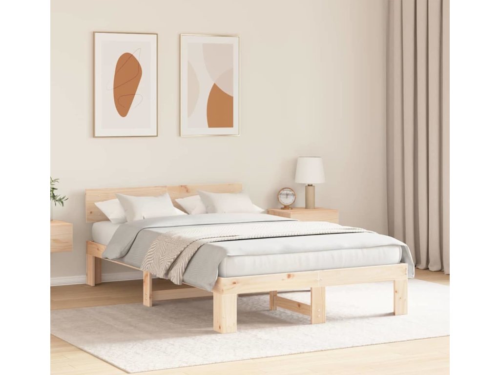 Rám postele s čelo Přírodní 120 x 200 cm Masivní borové dřevo [872653]