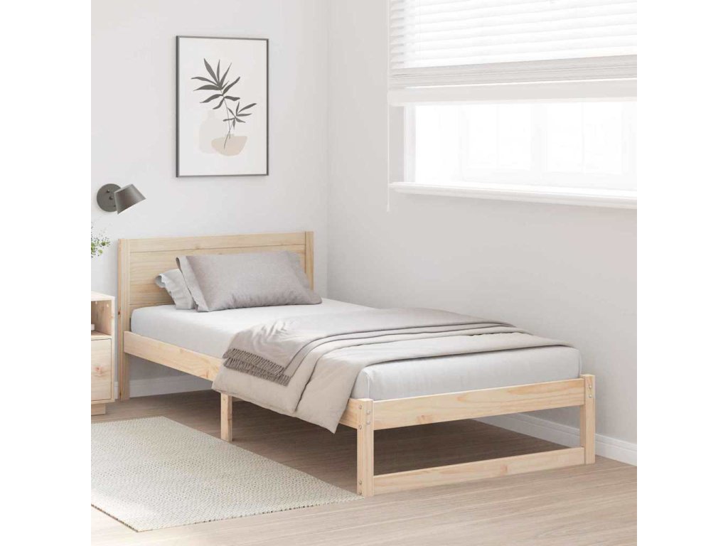 Rám postele s čelo Přírodní 90 x 200 cm Masivní borové dřevo [873289]