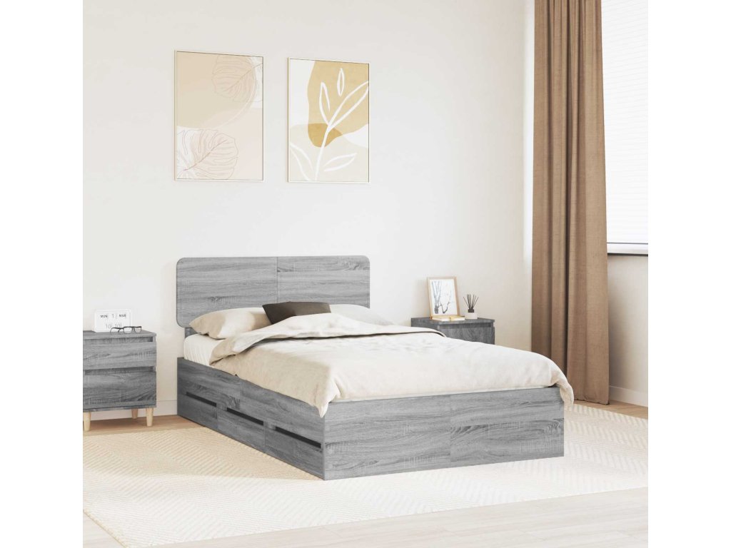 Rám postele s čelo Šedá Sonoma 120 x 190 cm Inženýrské dřevo [3412204]
