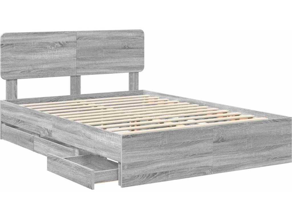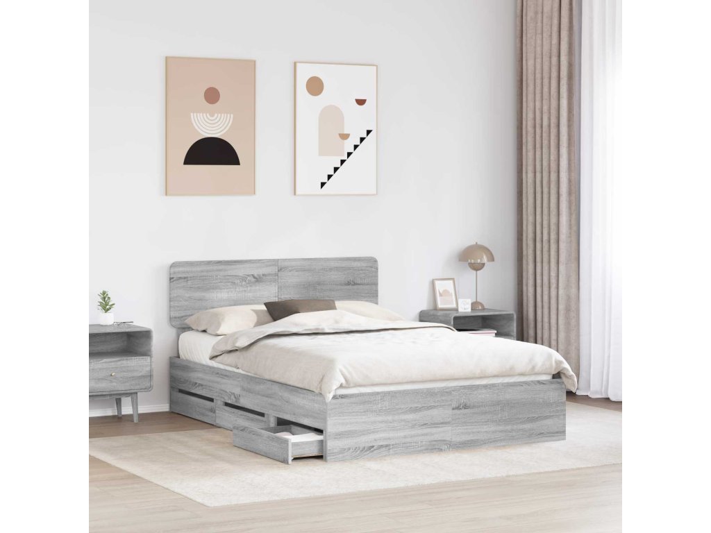 Rám postele s čelo Šedá Sonoma 150 x 200 cm Inženýrské dřevo [3412176]