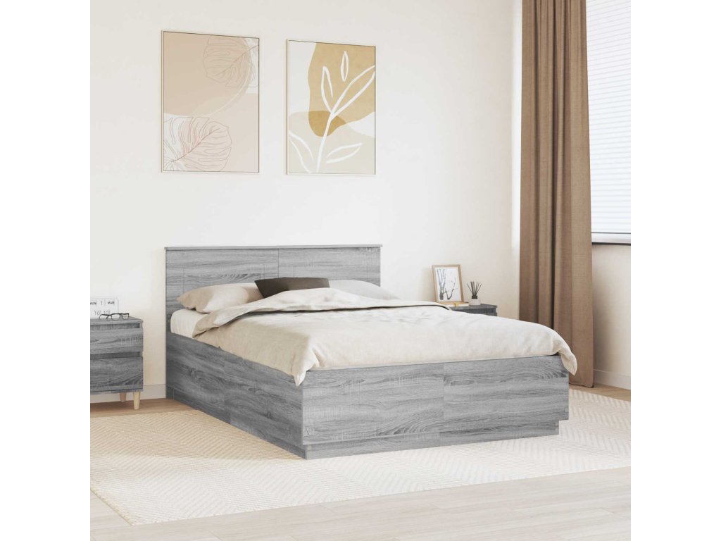 Rám postele s čelo Šedá Sonoma 150 x 200 cm kompozitní dřevo [3408157]