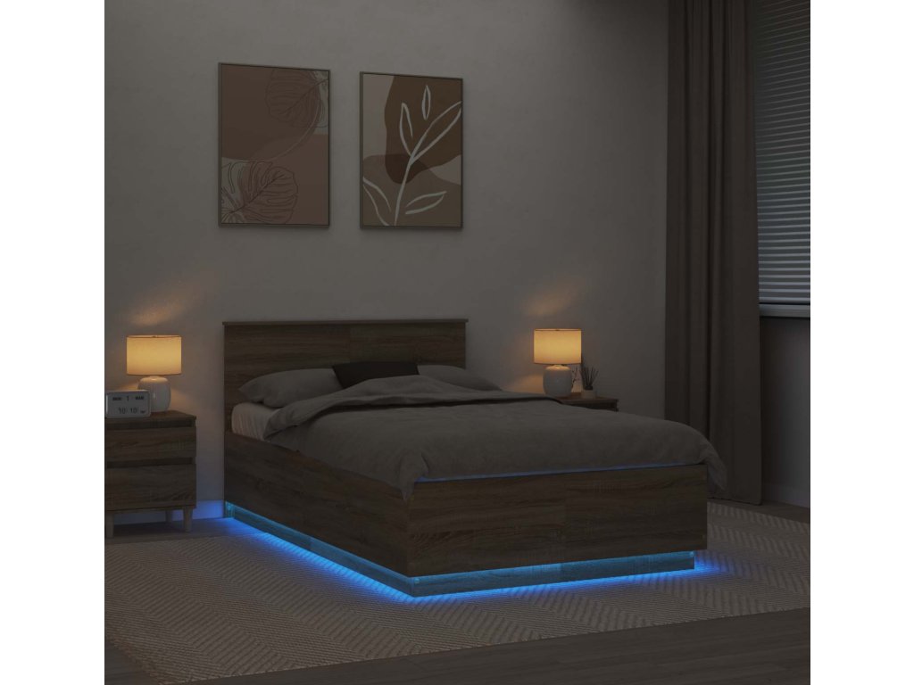 Tenhle moderní rám postele oživí vaši ložnici s elegantním a současným vzhledem. Rám, pečlivě vyrobený z kompozitního dřeva, nabízí minimalistický design, který se hodí do každého moderního interiéru. Navržený pro vylepšení vašeho spánku, postel má nastavitelné čelo a uklidňující LED osvětlení pro příjemné pozadí, které posílí atmosféru kolem.