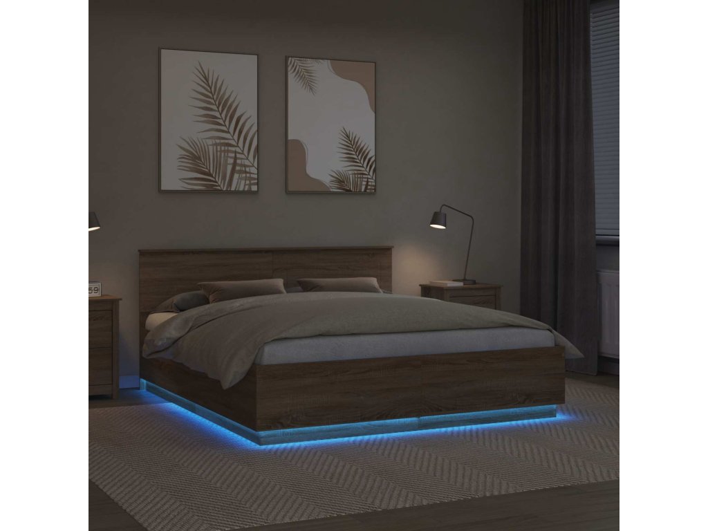 Tenhle moderní rám postele oživí vaši ložnici s elegantním a současným vzhledem. Rám, pečlivě vyrobený z kompozitního dřeva, nabízí minimalistický design, který se hodí do každého moderního interiéru. Navržený pro vylepšení vašeho spánku, postel má nastavitelné čelo a uklidňující LED osvětlení pro příjemné pozadí, které posílí atmosféru kolem.