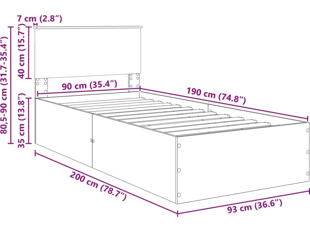Rám postele s čelo Sonoma dub 90 x 190 cm kompozitní dřevo [3408706]