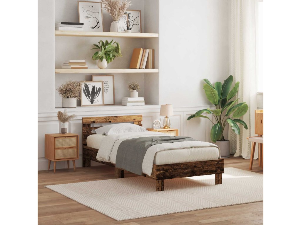 Rám postele s LED Staré dřevo 100 x 200 cm kompozitní dřevo [863637]