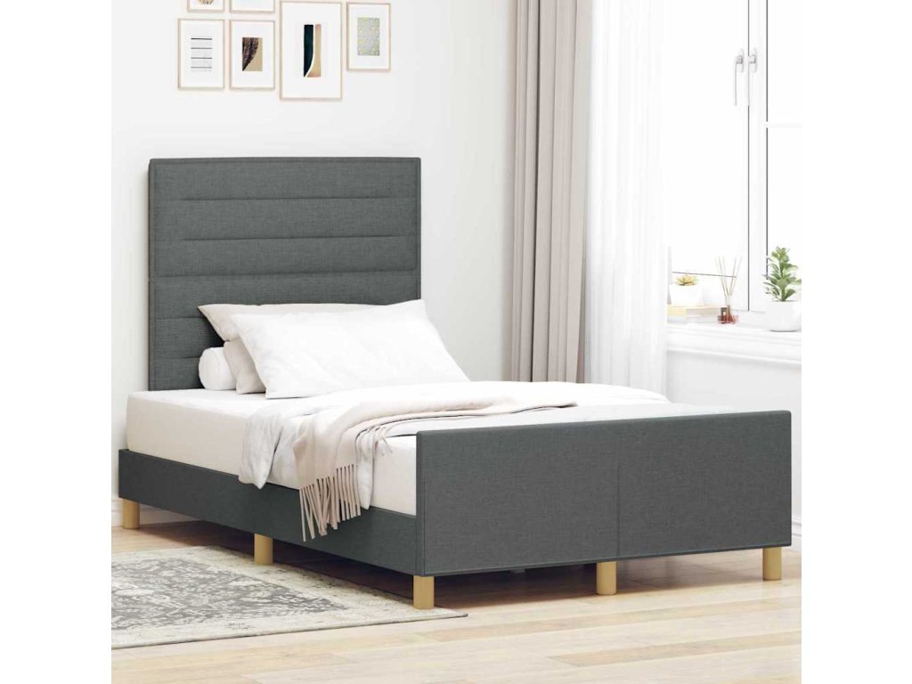 Rám postele s čelo Tmavě šedá 120 x 190 cm textil [3344635]