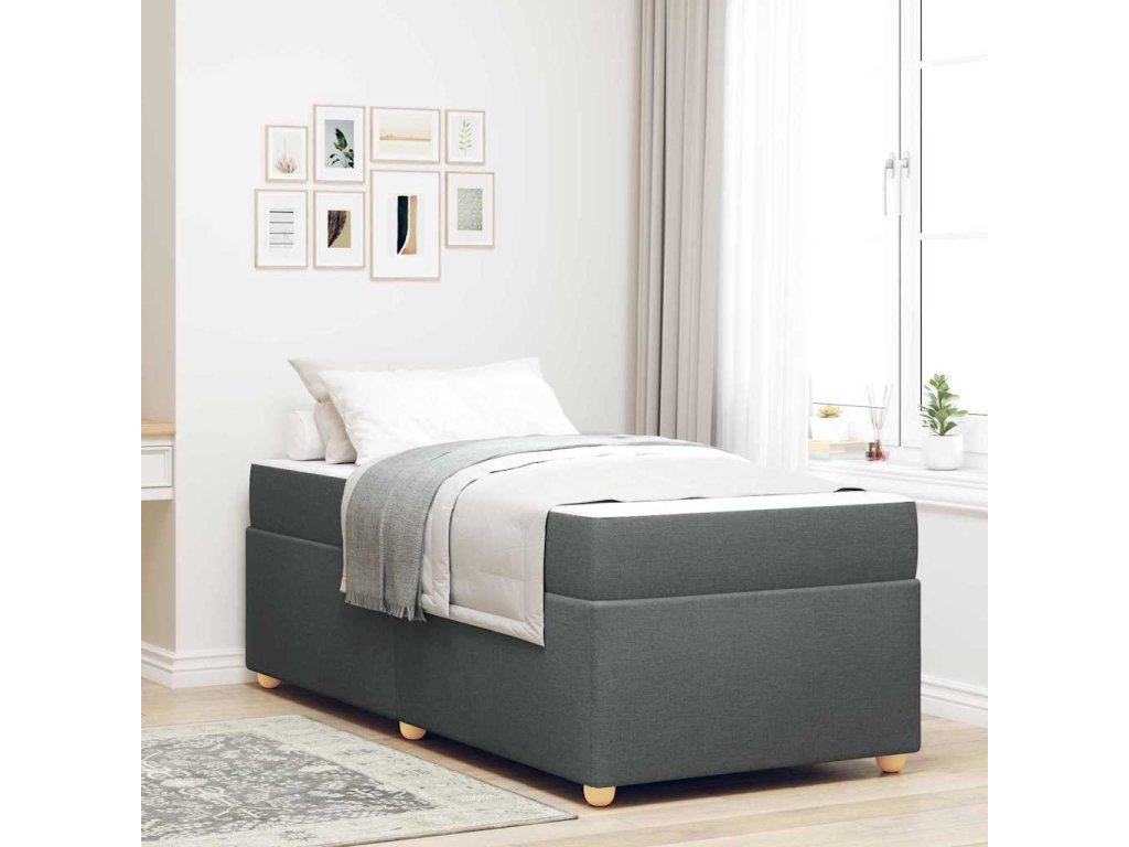Rám postele s matrací Tmavě šedá 100 x 200 cm textil [3399336]