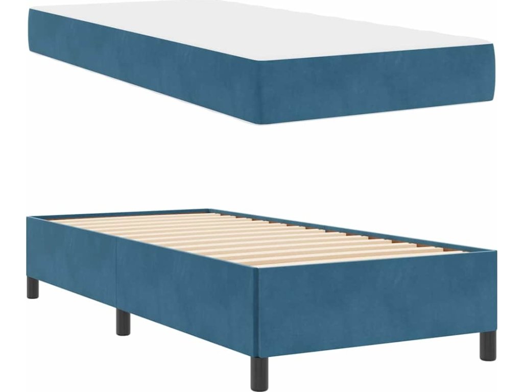 Rám postele s matrací Tmavě modrá 100 x 200 cm textil [3399046]