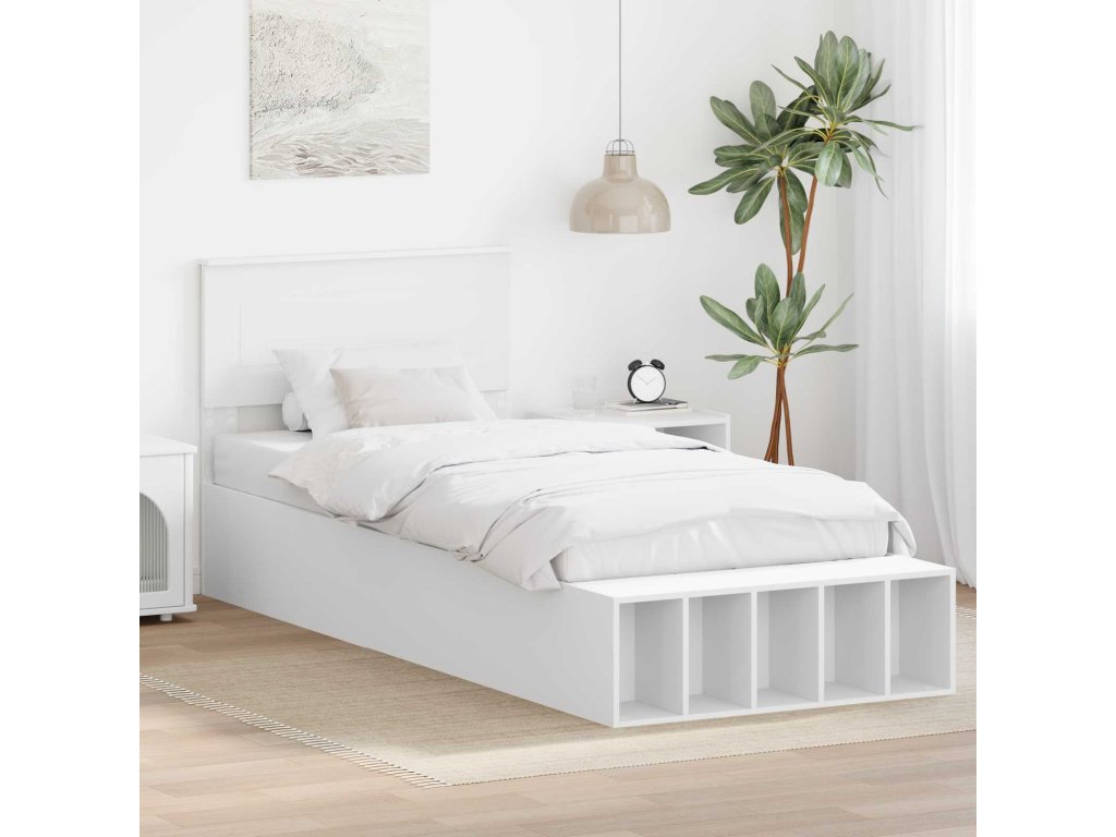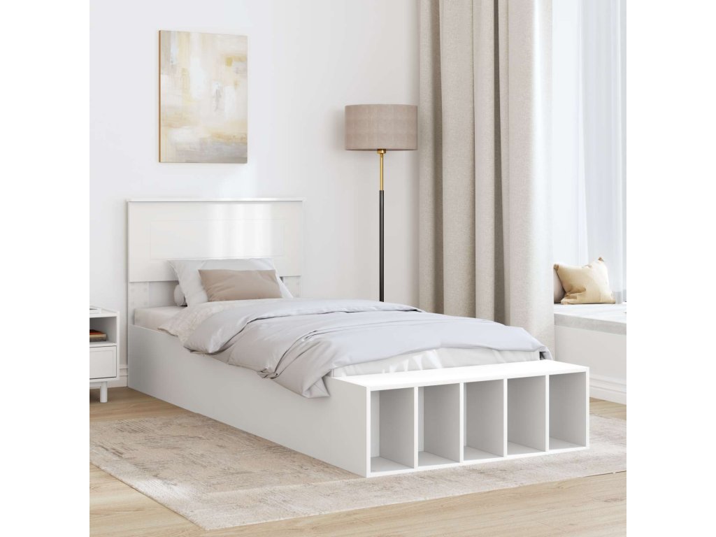 Rám postele s policí s čelo Bílá 75 x 190 cm kompozitní dřevo [3408417]