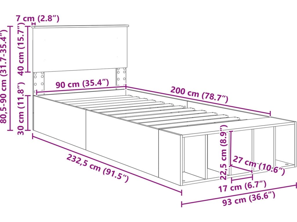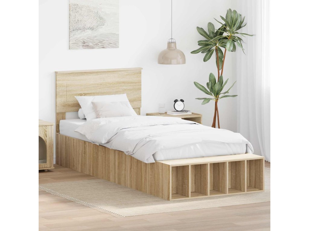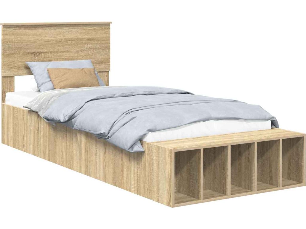 Rám postele s policí Sonoma dub 90 x 200 cm kompozitní dřevo [3408412]