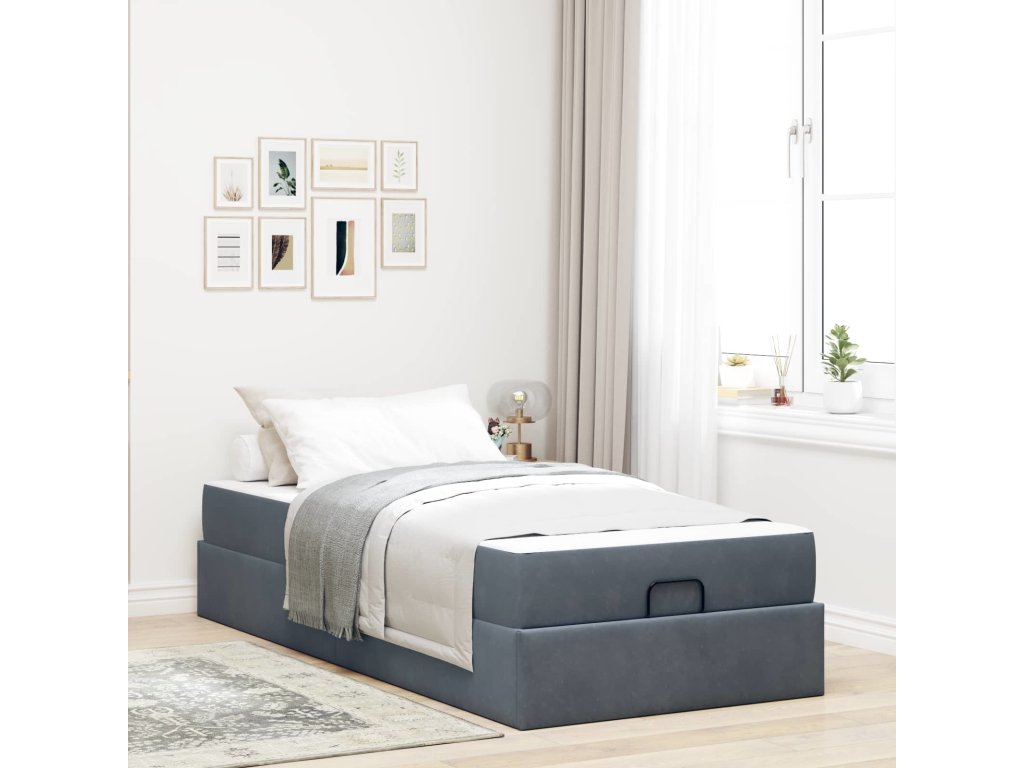 Rám postele s matrací s matrací 2 pcs Tmavě Šedá samet [3399541]