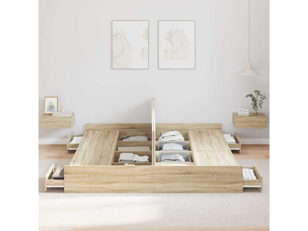 - Komplexní úložná řešení: Postel má spoustu integrovaných zásuvek, což maximalizuje místo v ložnici. Tyto úložné boxy z inženýrského dřeva vám umožní pohodlně skladovat věci jako ložní prádlo nebo oblečení a udržet místnost v pořádku.